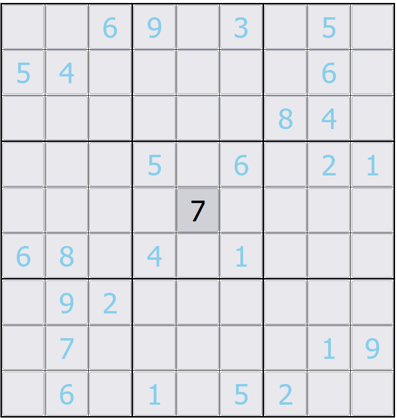 Sudoku is a logic-based number puzzle. The goal is to fill a 9×9 grid so that every row, every column, and each of the nine 3×3 boxes contains all the numbers from 1 to 9, with no repeats.
